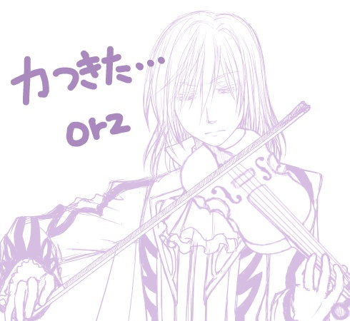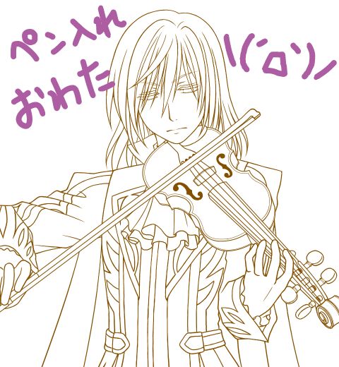 漫画を描いている時にグレイセスのサントラを聴いていたら、ちょうどエメロード戦の曲(狂乱舞踏)が流れてきて、この曲のヴァイオリンのソロパートをリチャードが弾いているところを妄想して滾ったので(リチャならこのくらいハイレベルな曲も弾けると信じている!)、演奏中なリチャを絵に描いてみたら、あまりの難しさに下書きで力尽きたヽ(´∀`)ノ